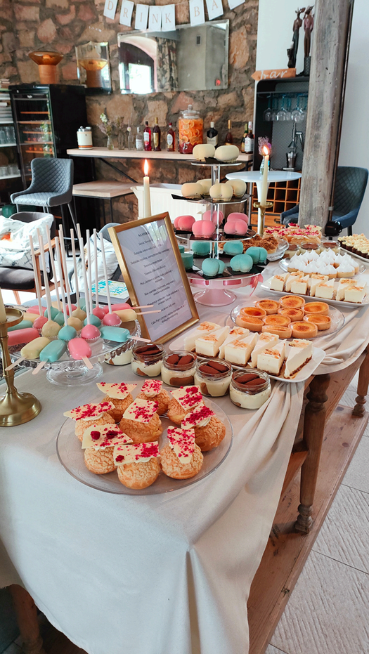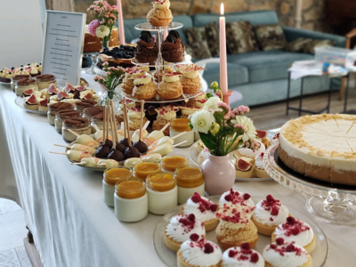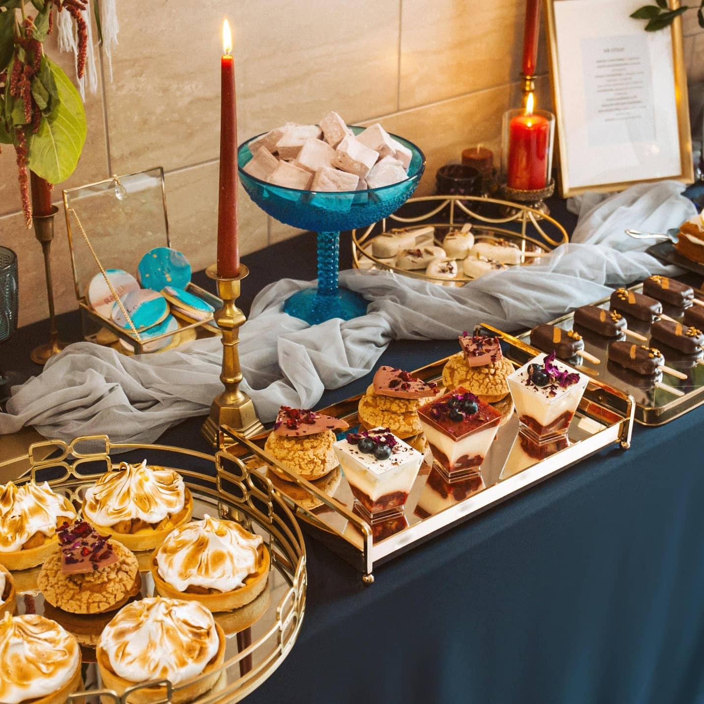 Wszystko co znajduje się na słodkim stole przywozimy ze sobą. Patery,ozdobne talerze, świeczniki, wazony, obrus… O nic nie musicie się martwić.